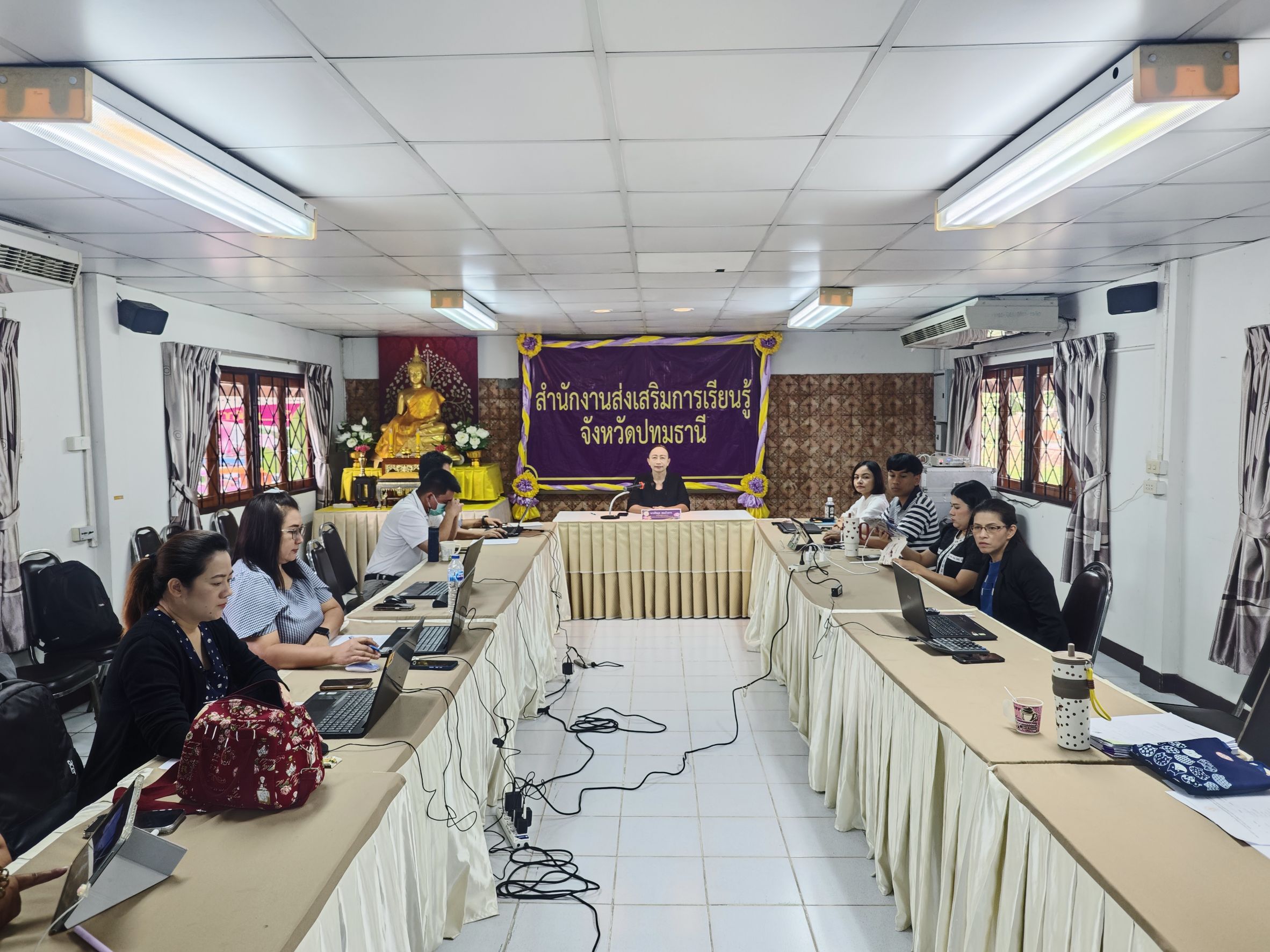 สำนักงานส่งเสริมการเรียนรู้ประจำจังหวัดปทุมธานี จัดการประชุมชี้แจงแนวทางการใช้งานแพลตฟอร์มดิจิทัลเพื่อเพิ่มประสิทธิภาพการบริหารงานบุคคล โดยมี นางรัชนุช สละโวหาร ผู้อำนวยการสำนักงานส่งเสริมการเรียนรู้ประจำจังหวัดปทุมธานี ให้เกียรติเป็นประธานในการประชุม ณ ห้องประชุมสำนักงานส่งเสริมการเรียนรู้ประจำจังหวัดปทุมธานี