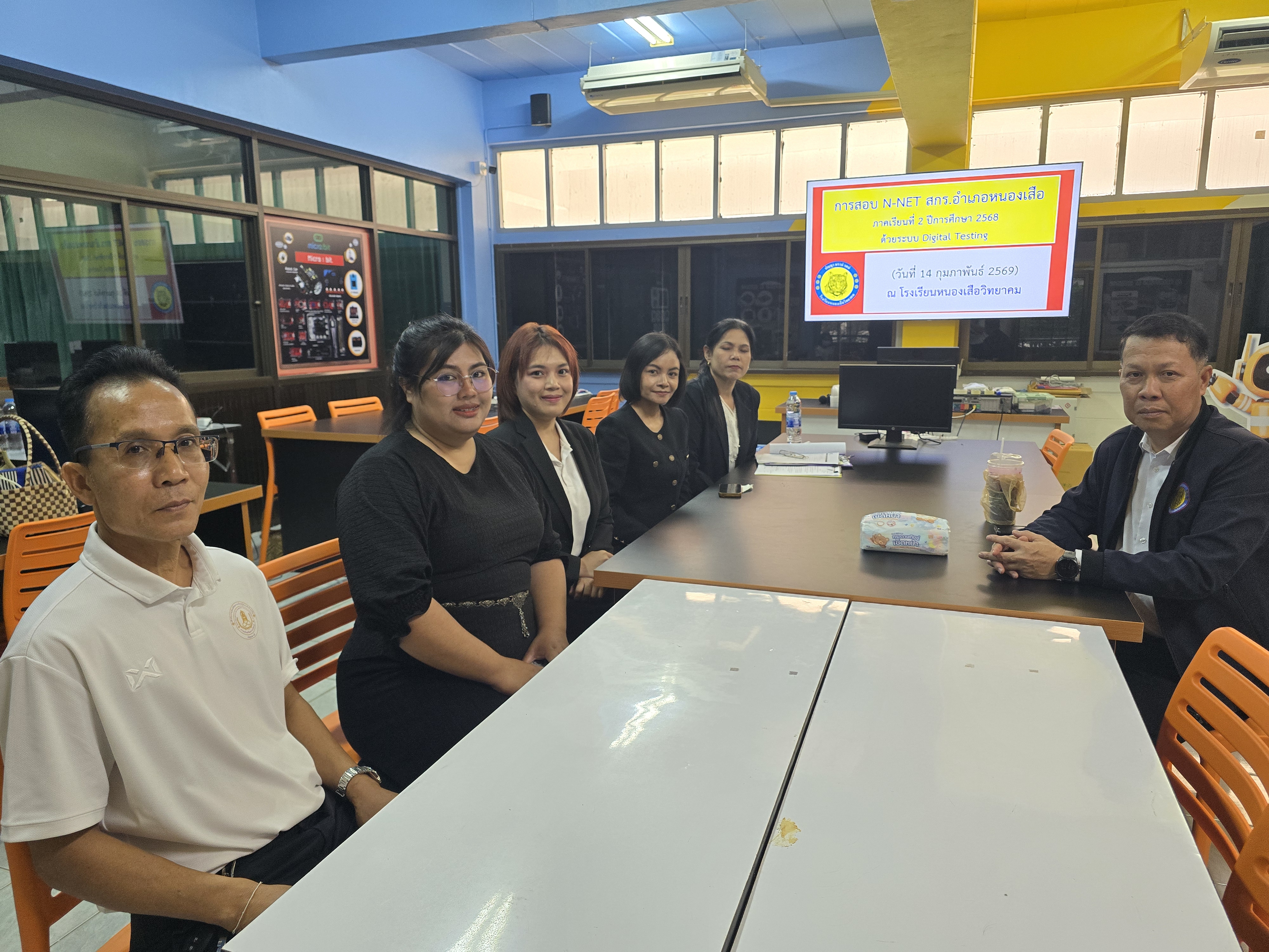 วันที่ 14 กุมภาพันธ์ พ.ศ.2569 นางรัชนุช สละโวหาร ผอ.สนง.สกร.ประจำจังหวัดปทุมธานี มอบหมายให้ นางสาวนิสา ที่ดินดำ นักวิชาการศึกษาปฏิบัติการ นายสรุจภาคย์ เธียรมังคลาสิน นักวิชาการศึกษา นางสาวศิริลดา โมลาศน์ นักวิชาการพัสดุ และนางสาววรางคณา ศรีตะโกเศศ เจ้าพนักงานพัสดุ นิเทศสนามสอบ ติดตามผลการทดสอบทางการศึกษาระดับชาติด้านการศึกษานอกระบบโรงเรียน (N-NET) ครั้งที่ 2 ปีการศึกษา 2568 ระดับประถมศึกษา และระดับมัธยมศึกษาตอนต้น แบบ Digilal Testing สกร.ระดับอำเภอธัญบุรี สนามสอบโรงเรียนวัดอัยยิการาม ภาพรวมในการสอบเรียบร้อย