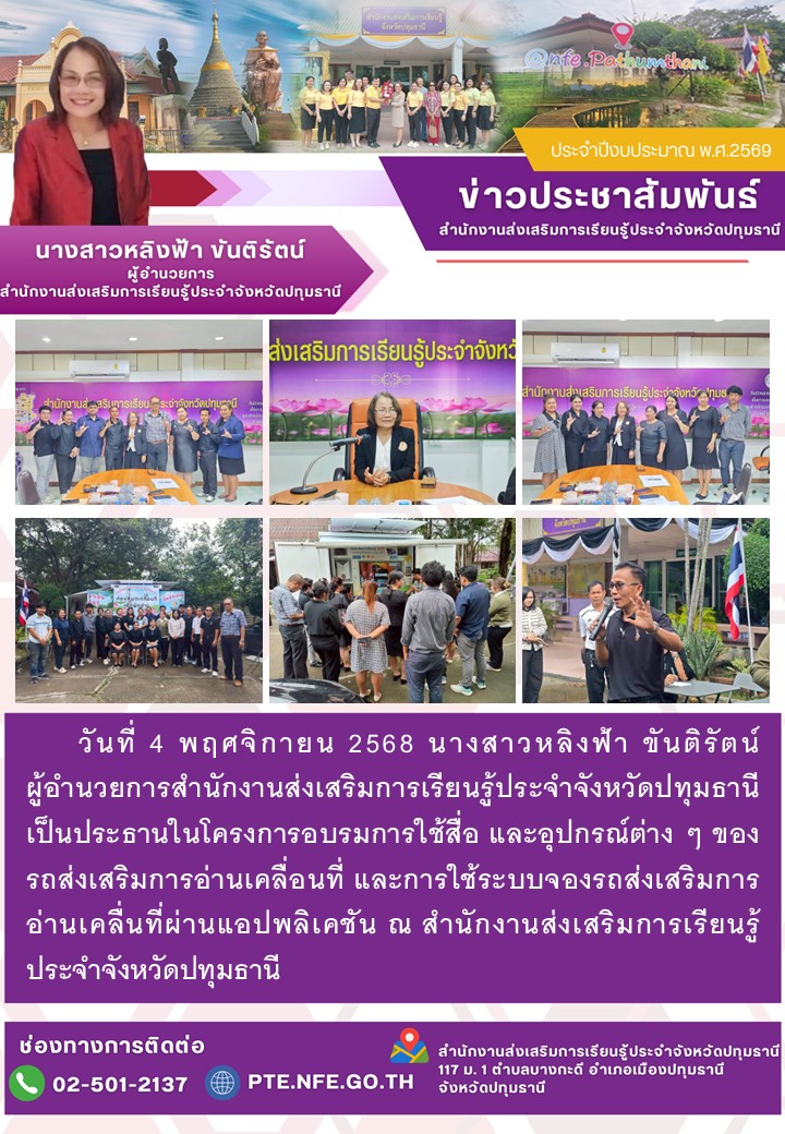 4 พฤศจิกายน 2568 โครงการอบรมการใช้สื่อ และอุปกรณ์ต่าง ๆ ของรถส่งเสริมการอ่านเคลื่อนที่
